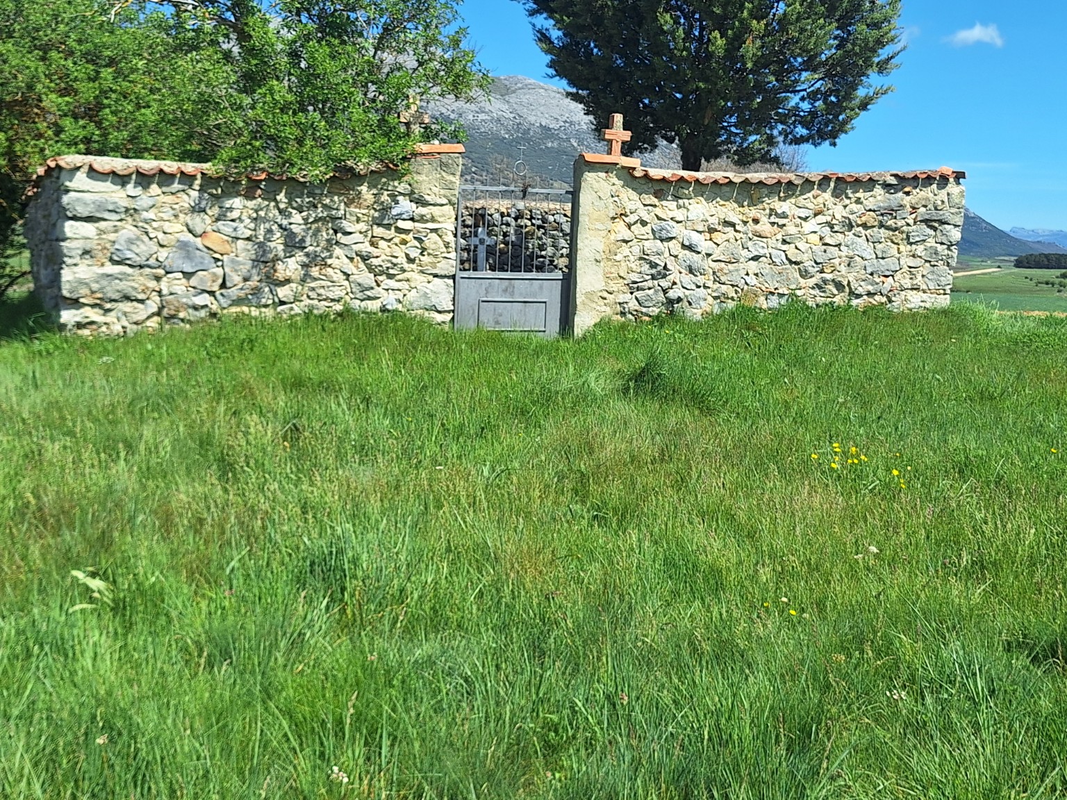 🖼️ Foto: Cementerio de Boedo de Castrejón. Situado fuera del núcleo urbano, conserva su muro original de piedra y la puerta con cruz de hierro. Archivo local, 2025.