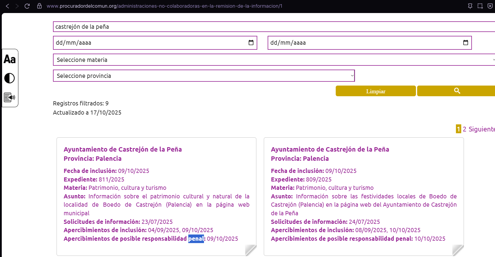 Dos resoluciones del Procurador del Común instan al Ayuntamiento a incluir información sobre el pueblo